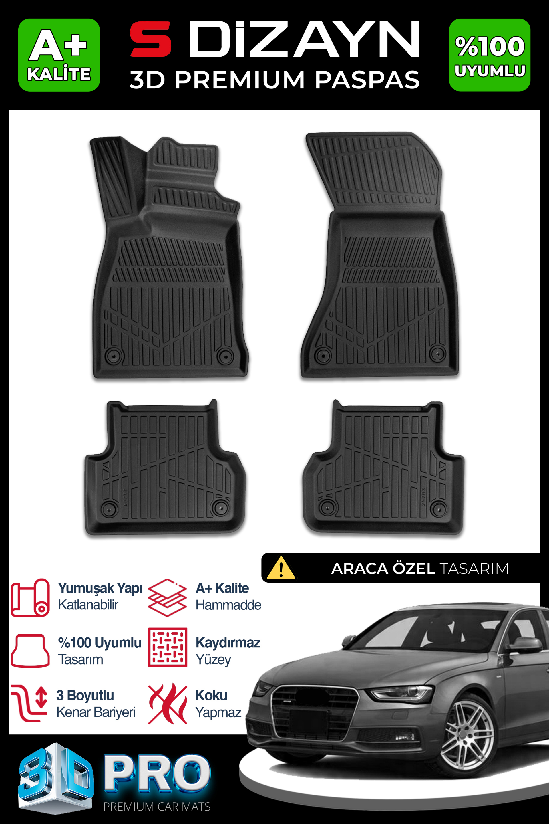 S-Dizayn Audi A4 3D Pro Havuzlu Paspas 2011-2016 A+ Kalite
