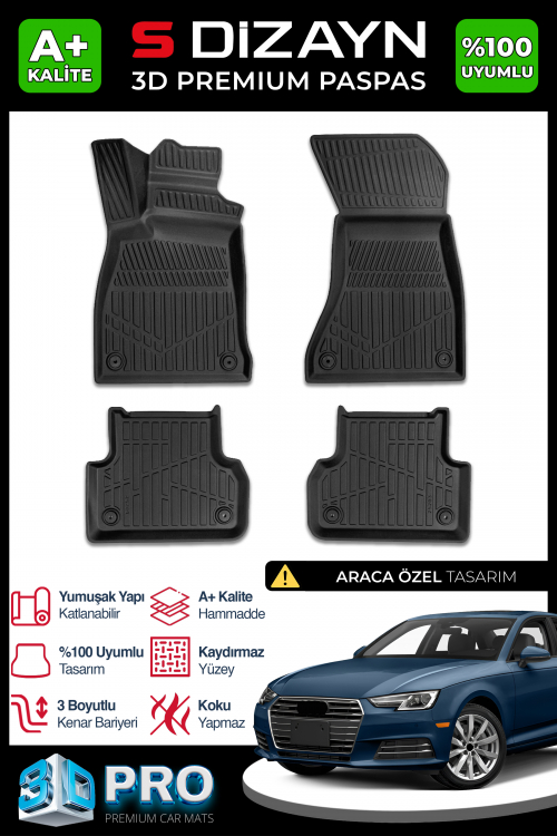 S-Dizayn Audi A4 3D Pro Havuzlu Paspas 2016 üzeri A+ Kalite