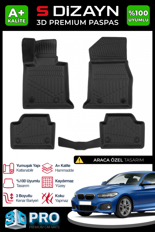 S-Dizayn Bmw 1 Serisi F20-F21 3D Pro Havuzlu Paspas 2011-2019 A+ Kalite