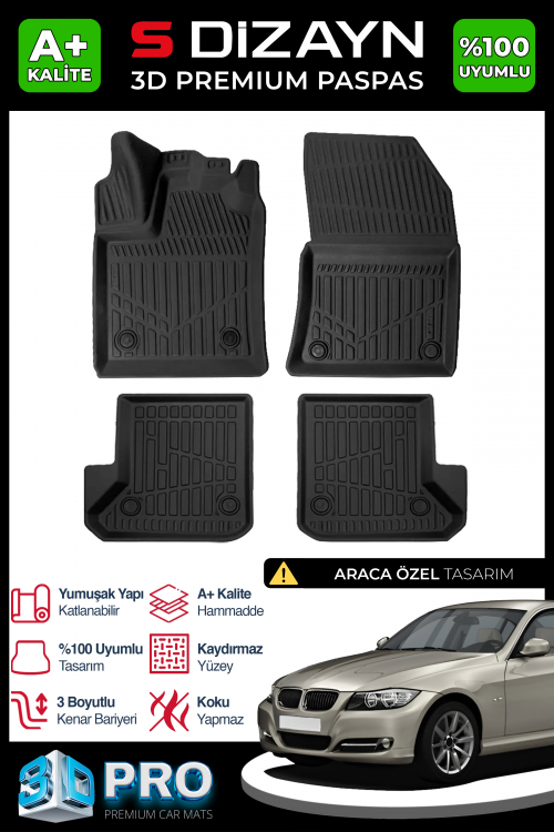 S-Dizayn Bmw 3 Serisi E90 3D Pro Havuzlu Paspas 2004-2013 A+ Kalite
