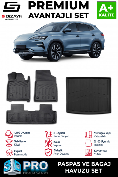 S-Dizayn BYD Seal U 3D Pro Havuzlu Paspas ve Bagaj Havuzu Seti (2'li SET) Üst Bagaj 2024 Üzeri A+ Kalite