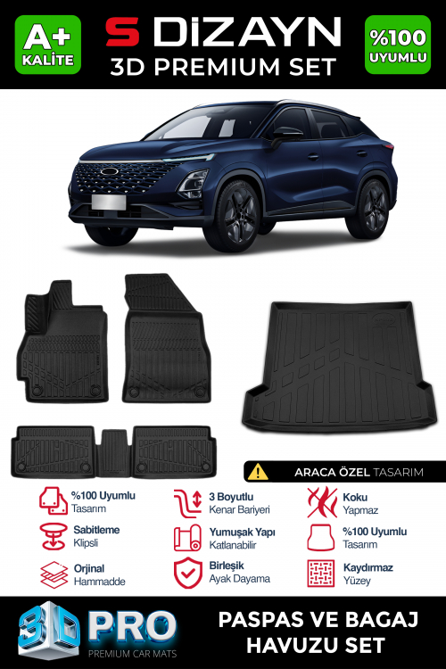 S-Dizayn Chery Omoda 5 3D Pro Havuzlu Paspas ve Bagaj Havuzu Seti (2'li SET) 2022 Üzeri A+ Kalite