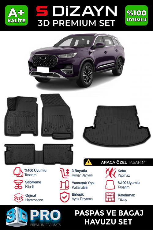 "3D Havuzlu Paspas," her araç modeli için özel olarak ölçülendirilmiş ve tasarlanmıştır. Bu sayede, aracınızın zeminine tam uyum sağlar, boşluk bırakmaz ve kaymadan güvenli bir kullanım sunar.