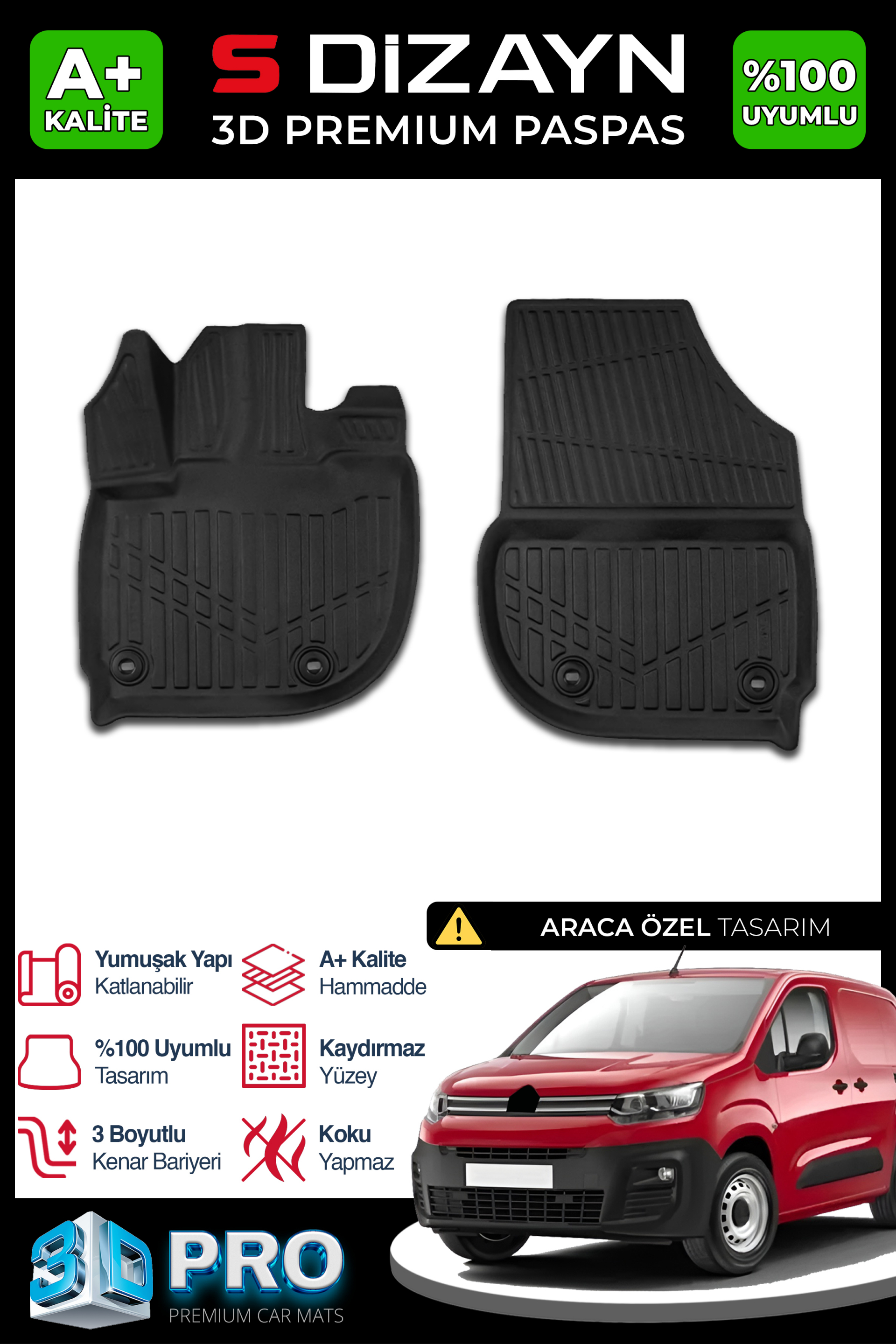 S-Dizayn Citroen Berlingo Panelvan 3D Pro Havuzlu Ön 2'li Paspas 2019 Üzeri A+ Kalite