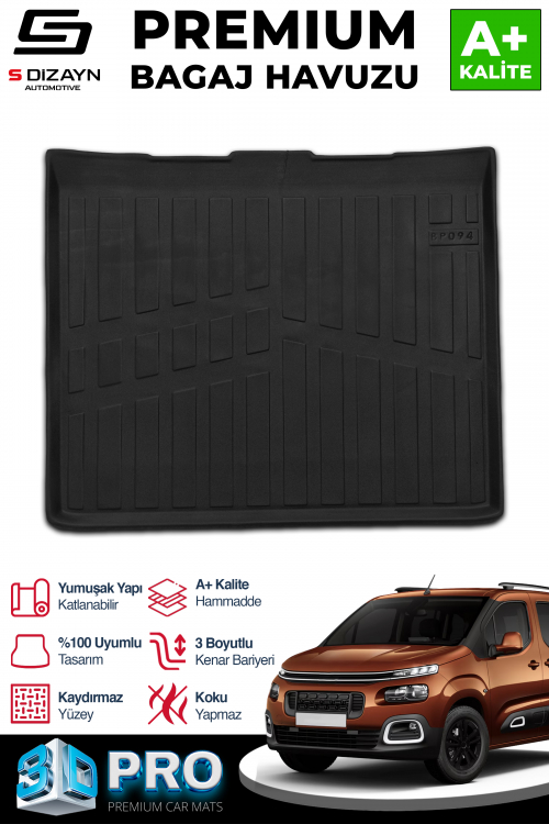 S-Dizayn Citroen Berlingo Seperatörsüz 3D Pro Bagaj Havuzu 2019 Üzeri A+ Kalite