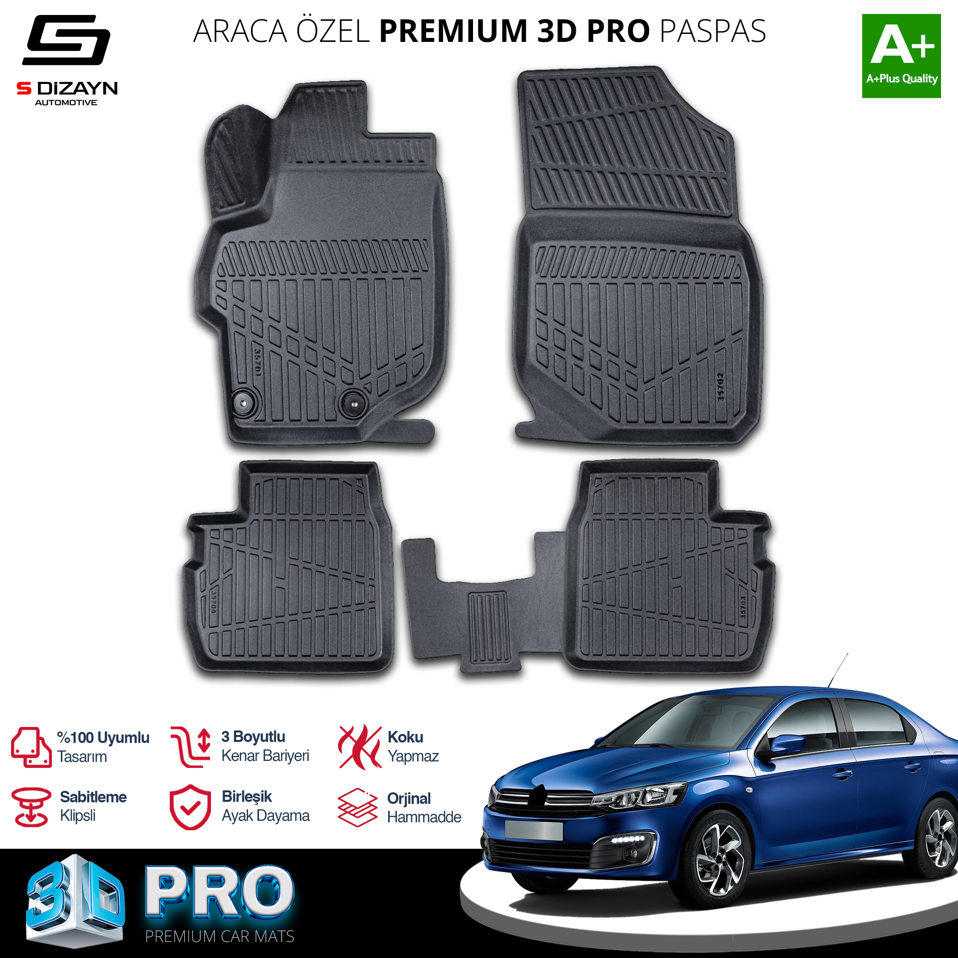 S-Dizayn Citroen C-Elysee 3D Pro Havuzlu Paspas 2012-2017 A+ Kalite