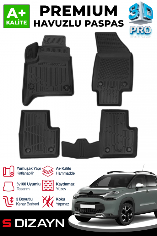 S-Dizayn Citroen C3 Aircross Benzinli 3D Pro Havuzlu Paspas 2025 Üzeri A+ Kalite