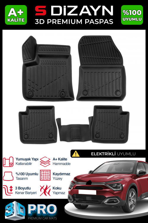 S-Dizayn Citroen C4 Elektrikli 3D Pro Havuzlu Paspas 2022 Üzeri A+ Kalite