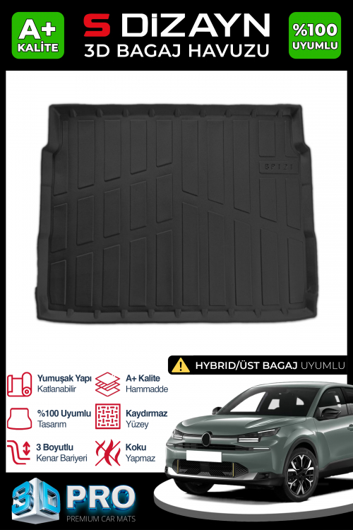S-Dizayn Citroen C4 Hybrid 3D Pro Bagaj Havuzu Üst Bagaj 2025 Üzeri A+ Kalite