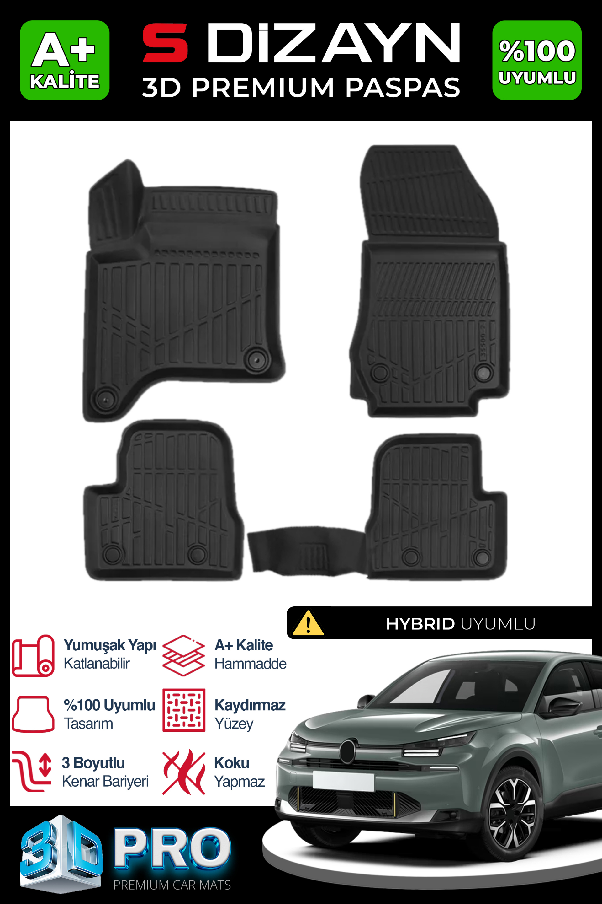 S-Dizayn Citroen C4 Hybrid 3D Pro Havuzlu Paspas 2025 Üzeri A+ Kalite