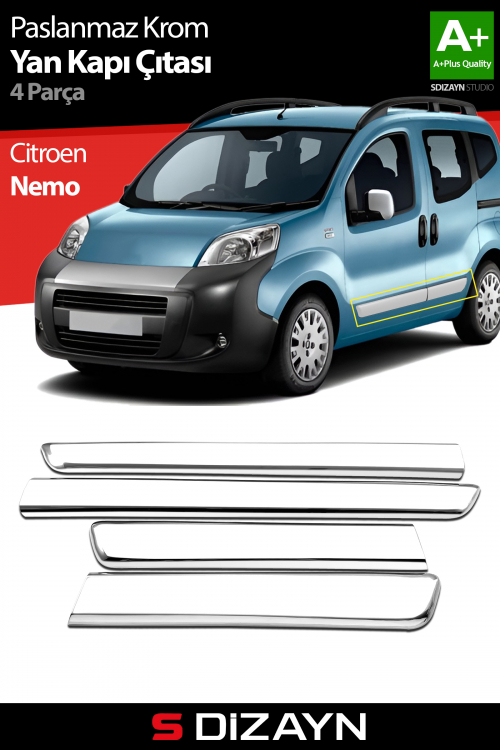 S-Dizayn Citroen Nemo Krom Yan Kapı Çıtası 4 Prç 2008-2017