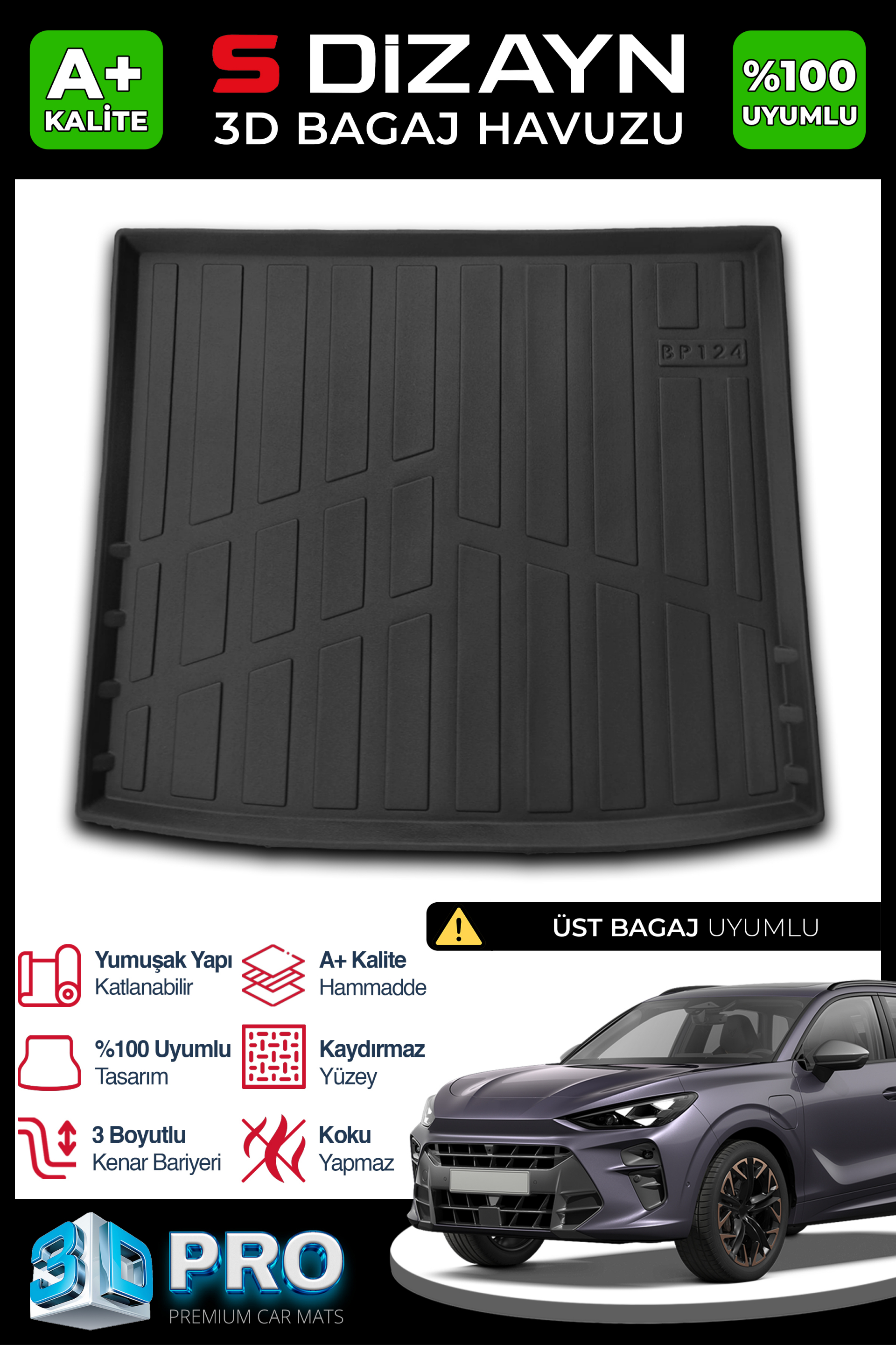 ● Aracınıza Özel Tasarım: Lazer kalıp teknolojisiyle aracınızın bagajına birebir uyum sağlayacak şekilde üretilir. Bu sayede maksimum koruma ve uyum sağlar. Aracınızın her köşesine tam oturur.