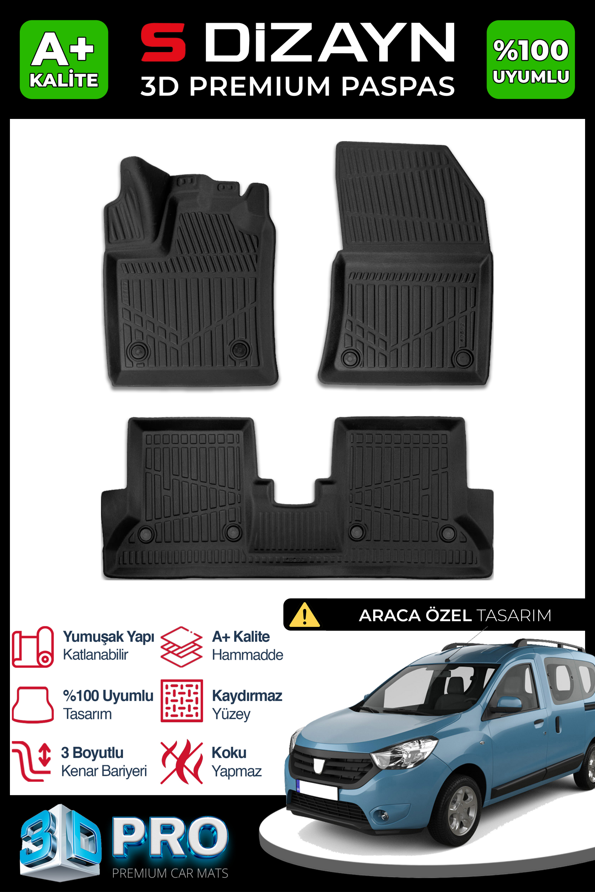 S-Dizayn Dacia Dokker 3D Pro Havuzlu Paspas 2012 Üzeri A+ Kalite