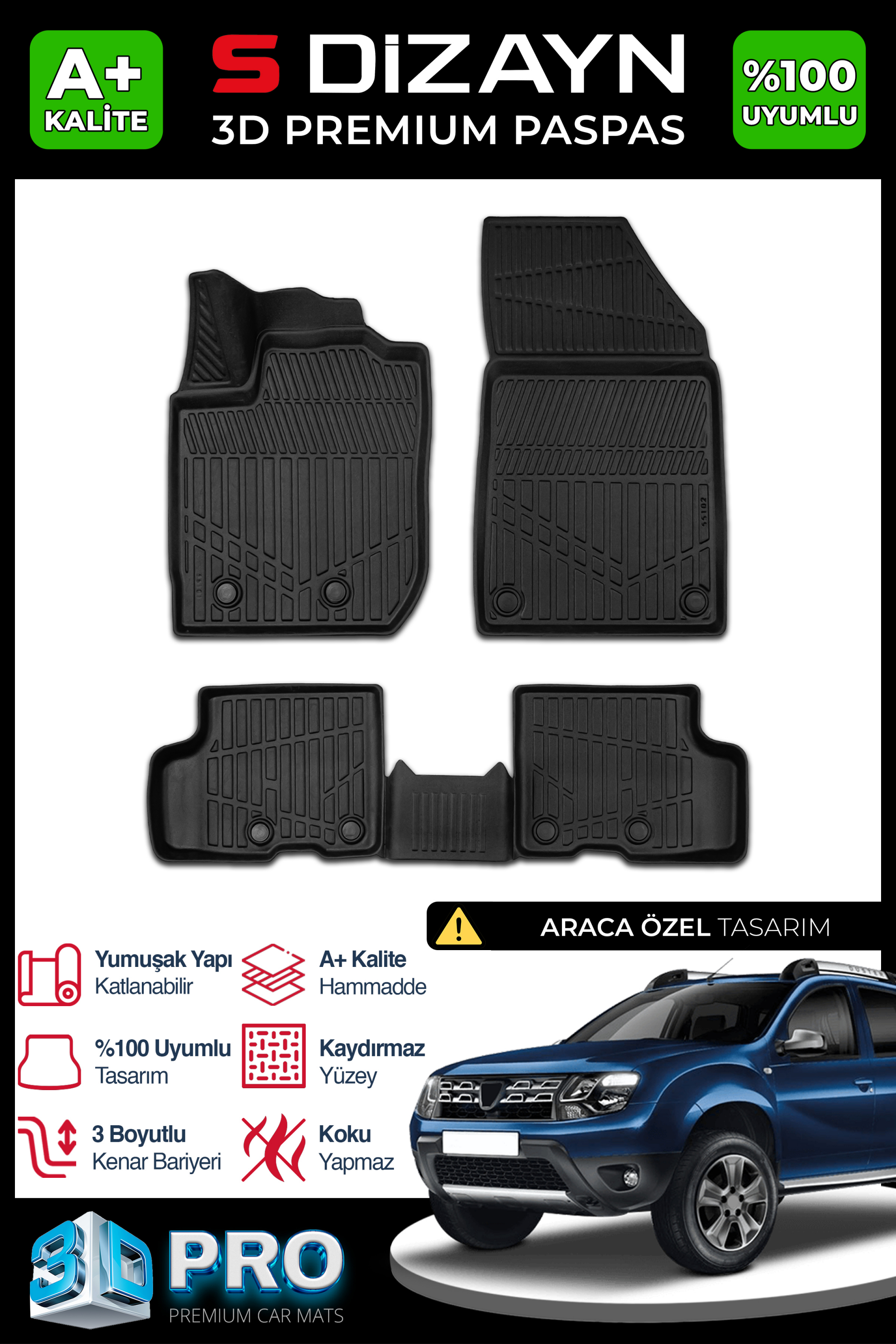 S-Dizayn Dacia Duster 3D Pro Havuzlu Paspas 2018-2022 A+ Kalite