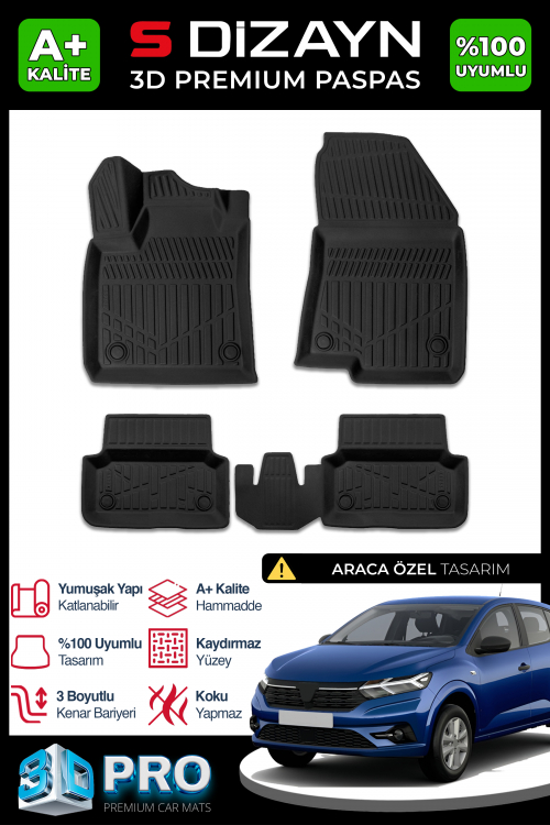S-Dizayn Dacia Sandero 3D Pro Havuzlu Paspas 2020 Üzeri A+ Kalite
