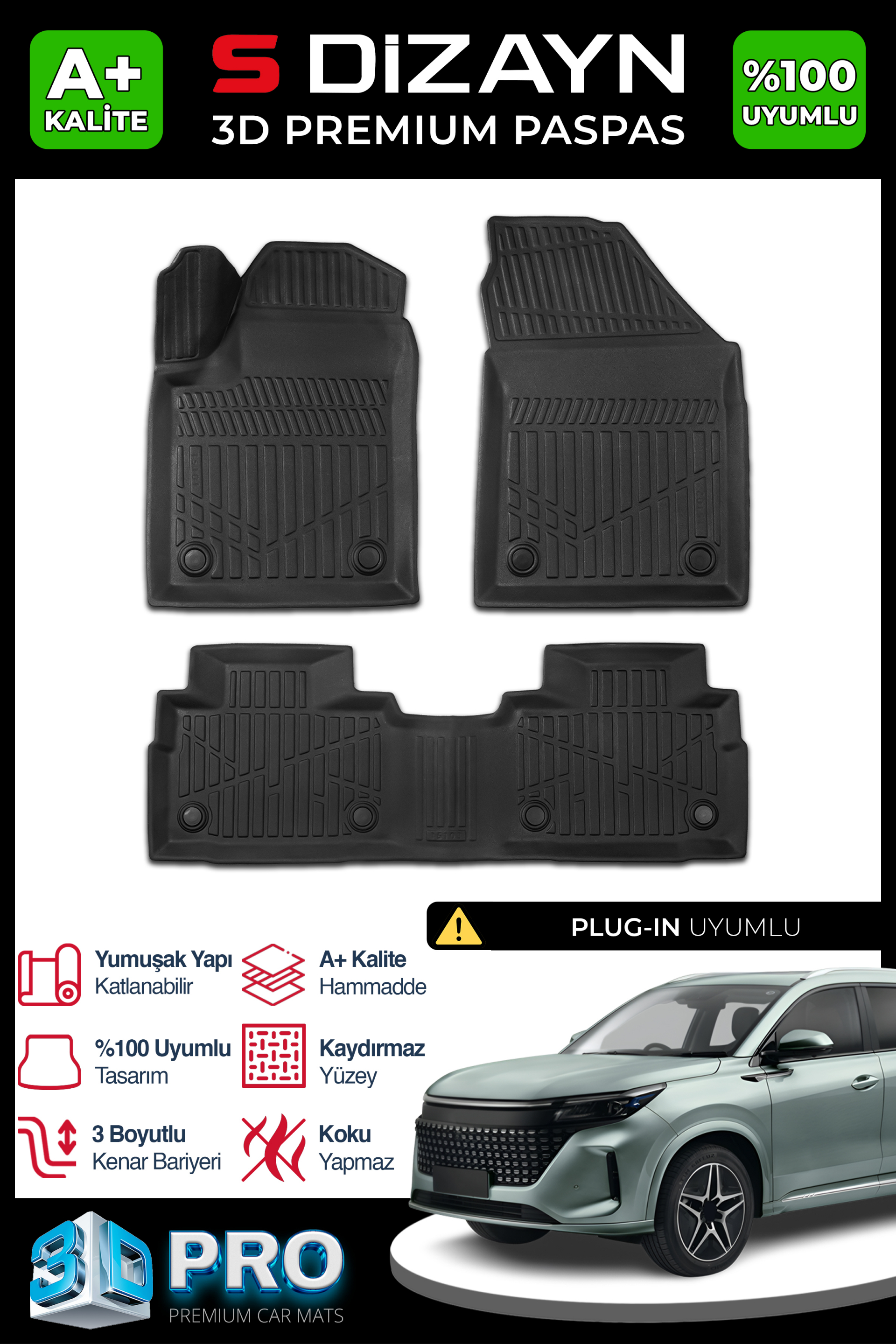 "3D Havuzlu Paspas," her araç modeli için özel olarak ölçülendirilmiş ve tasarlanmıştır. Bu sayede, aracınızın zeminine tam uyum sağlar, boşluk bırakmaz ve kaymadan güvenli bir kullanım sunar.