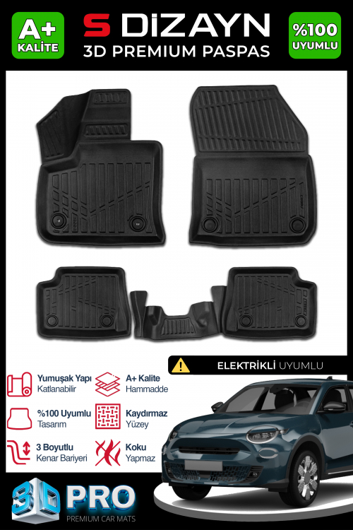 S-Dizayn Fıat 600 Elektrikli 3D Pro Havuzlu Paspas 2024 Üzeri A+ Kalite