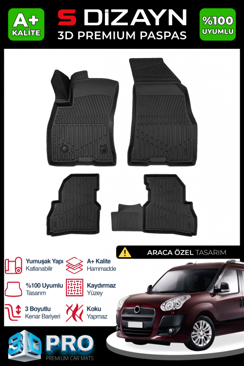 S-Dizayn Fiat Doblo Geniş Aile 3D Pro Havuzlu Paspas 2010-2022 A+ Kalite