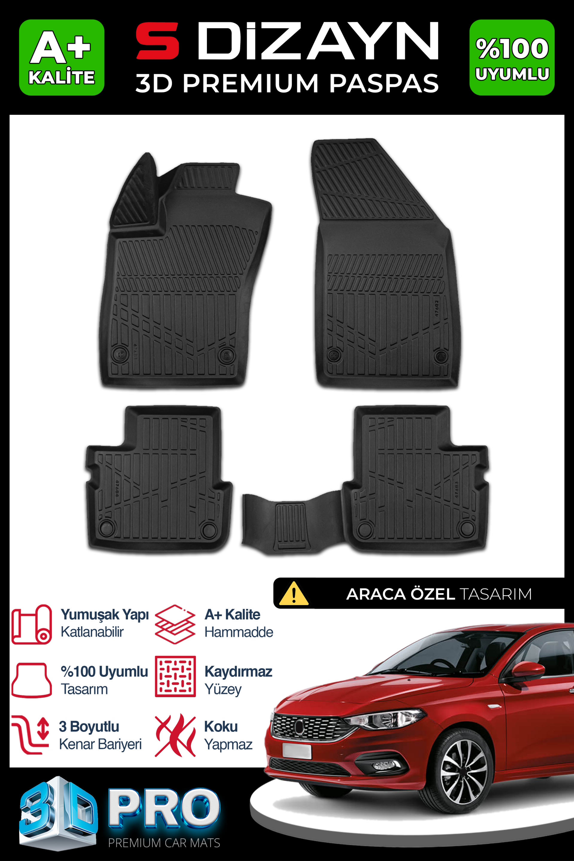 S-Dizayn Fiat Egea Sedan 3D Pro Havuzlu Paspas 2015 Üzeri A+ Kalite