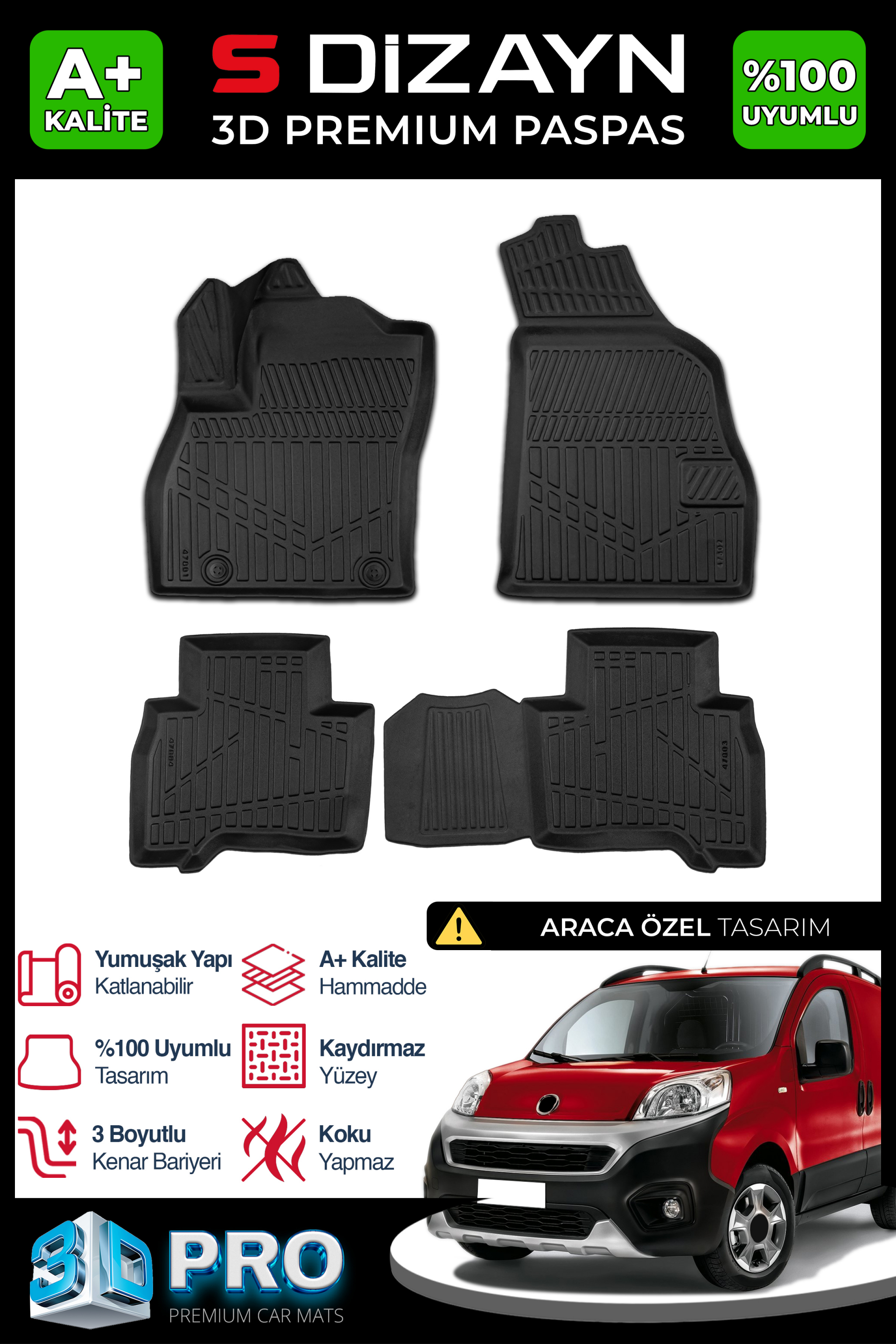 S-Dizayn Fiat Fiorino 3D Pro Havuzlu Paspas 2008-2019 A+ Kalite