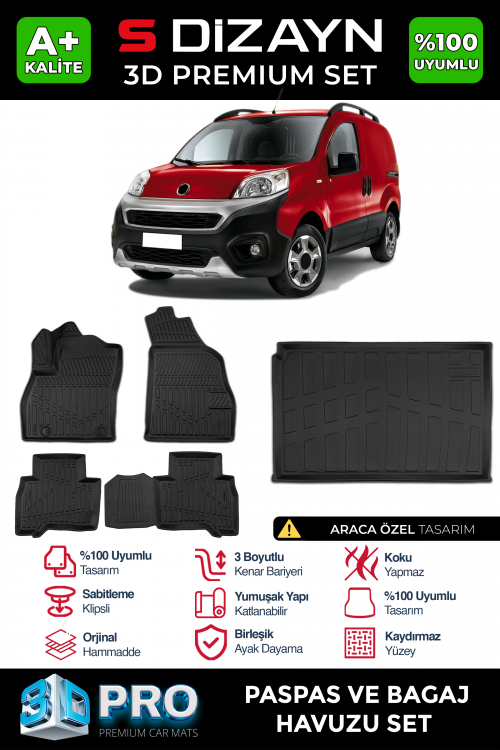 S-Dizayn Fiat Fiorino 3D Pro Havuzlu Paspas ve Bagaj Havuzu Seti (2'li SET) 2008-2023 A+ Kalite