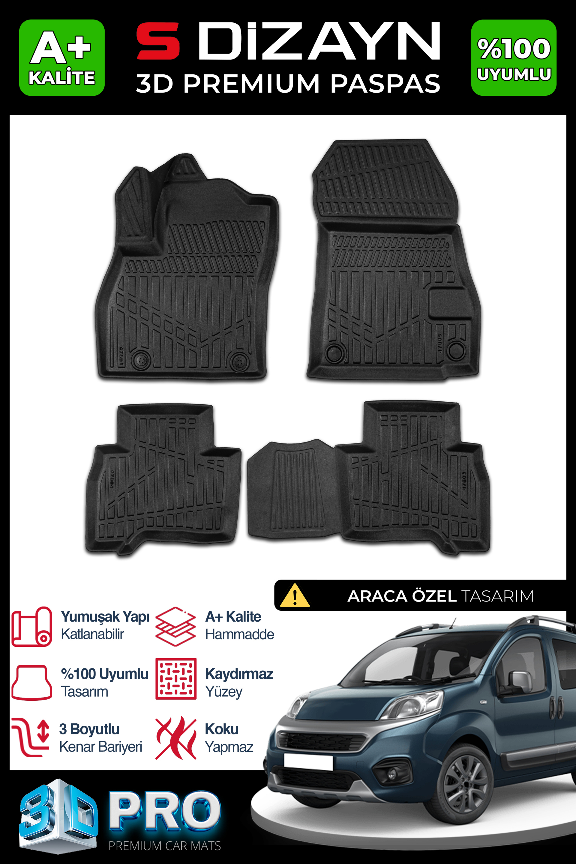 S-Dizayn Fiat Fiorino 3D Pro Havuzlu Paspas 2020 Üzeri A+ Kalite