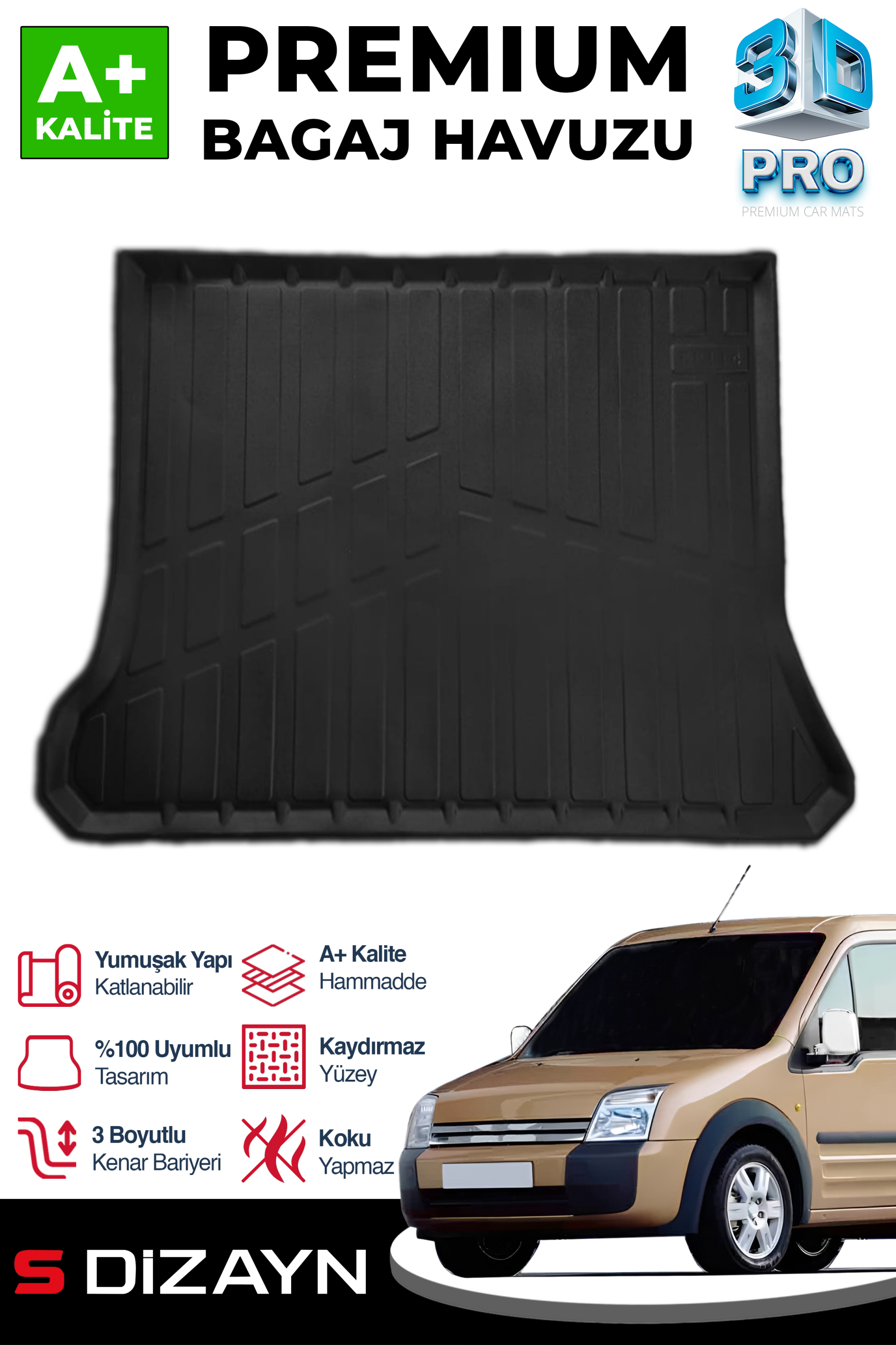 S-Dizayn Ford Connect 3D Pro Bagaj Havuzu 2002-2013 A+ Kalite