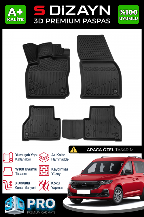 S-Dizayn Ford Connect 3D Pro Havuzlu Paspas 2023 Üzeri A+ Kalite