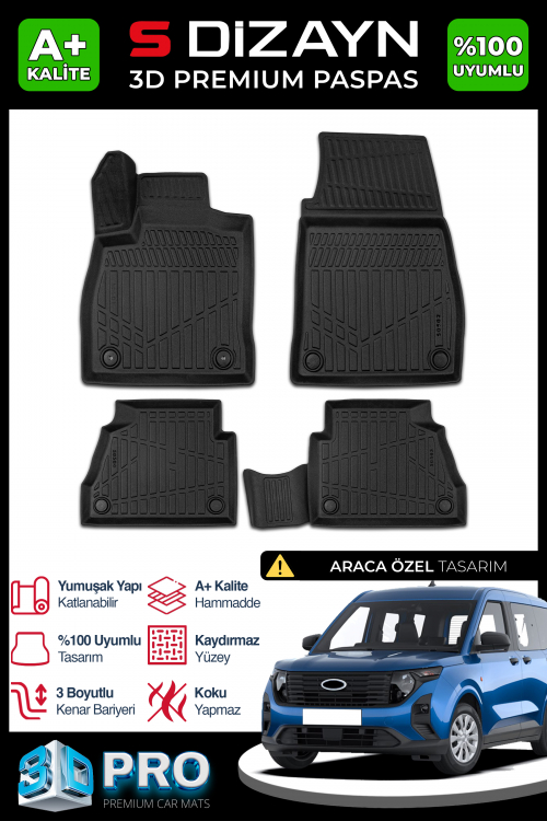S-Dizayn Ford Courier 3D Pro Havuzlu Paspas 2023 Üzeri A+ Kalite