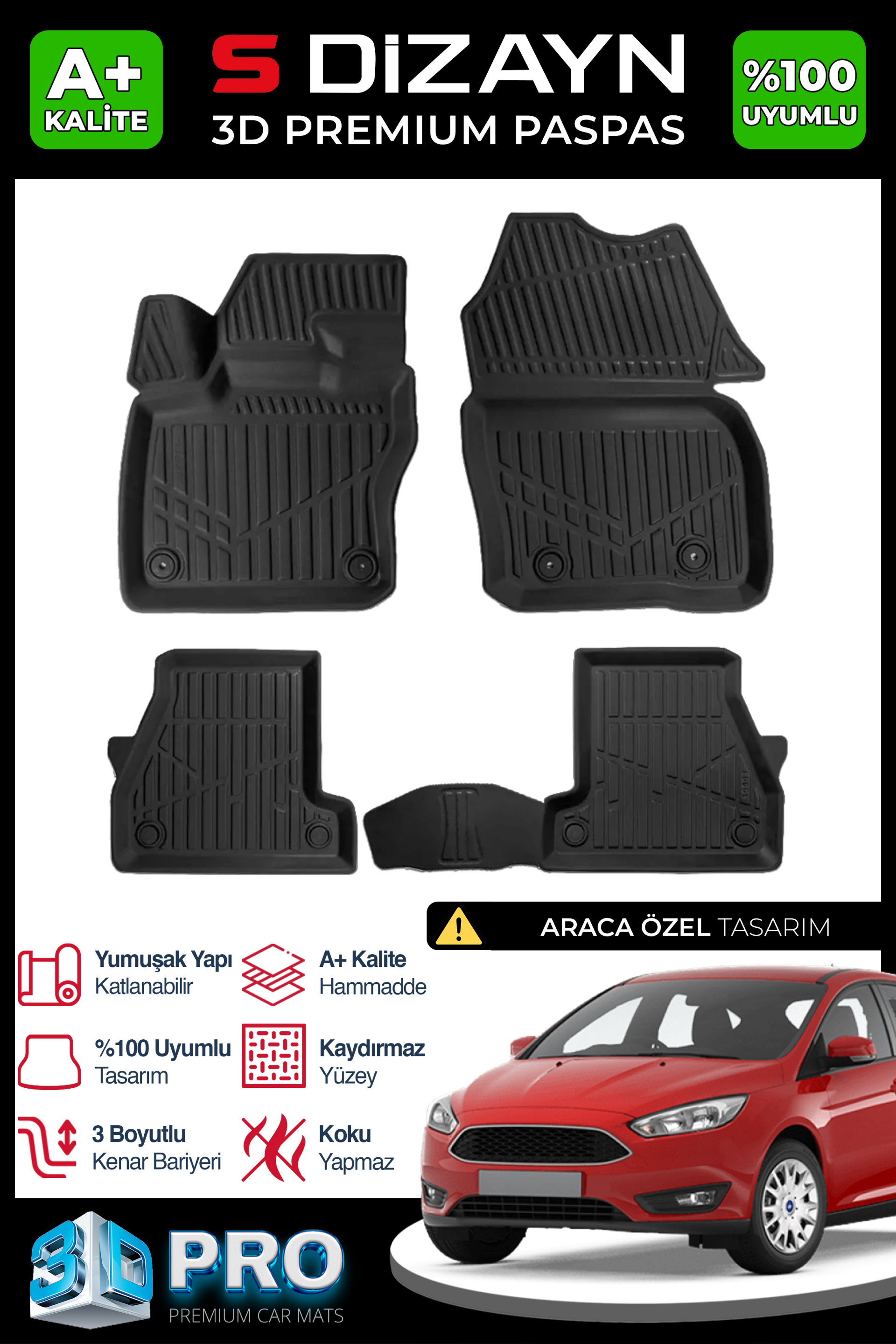 S-Dizayn Ford Focus 3 Makyajlı 3D Pro Havuzlu Paspas 2014-2019 A+ Kalite
