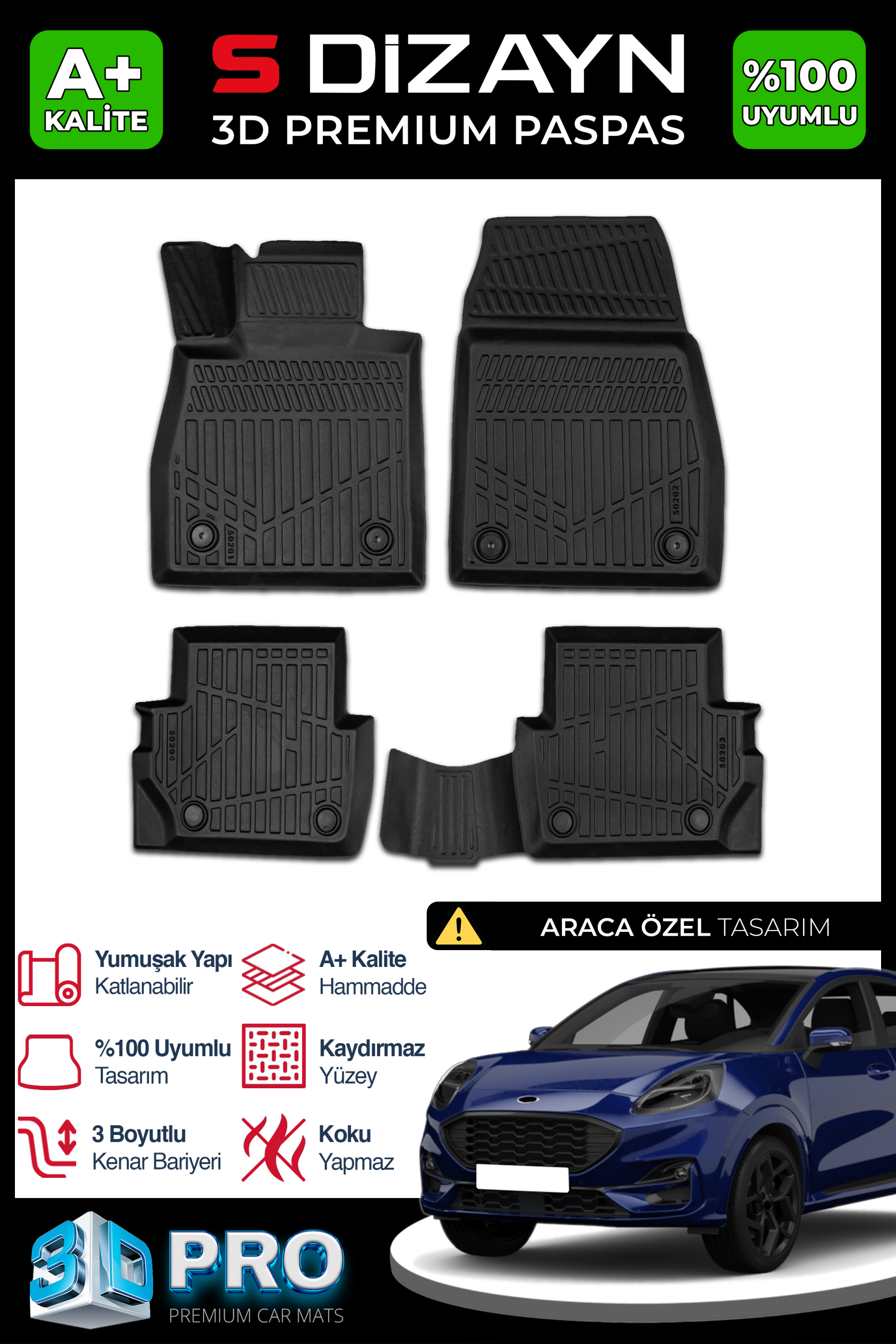S-Dizayn Ford Puma 3D Pro Havuzlu Paspas 2019 Üzeri A+ Kalite