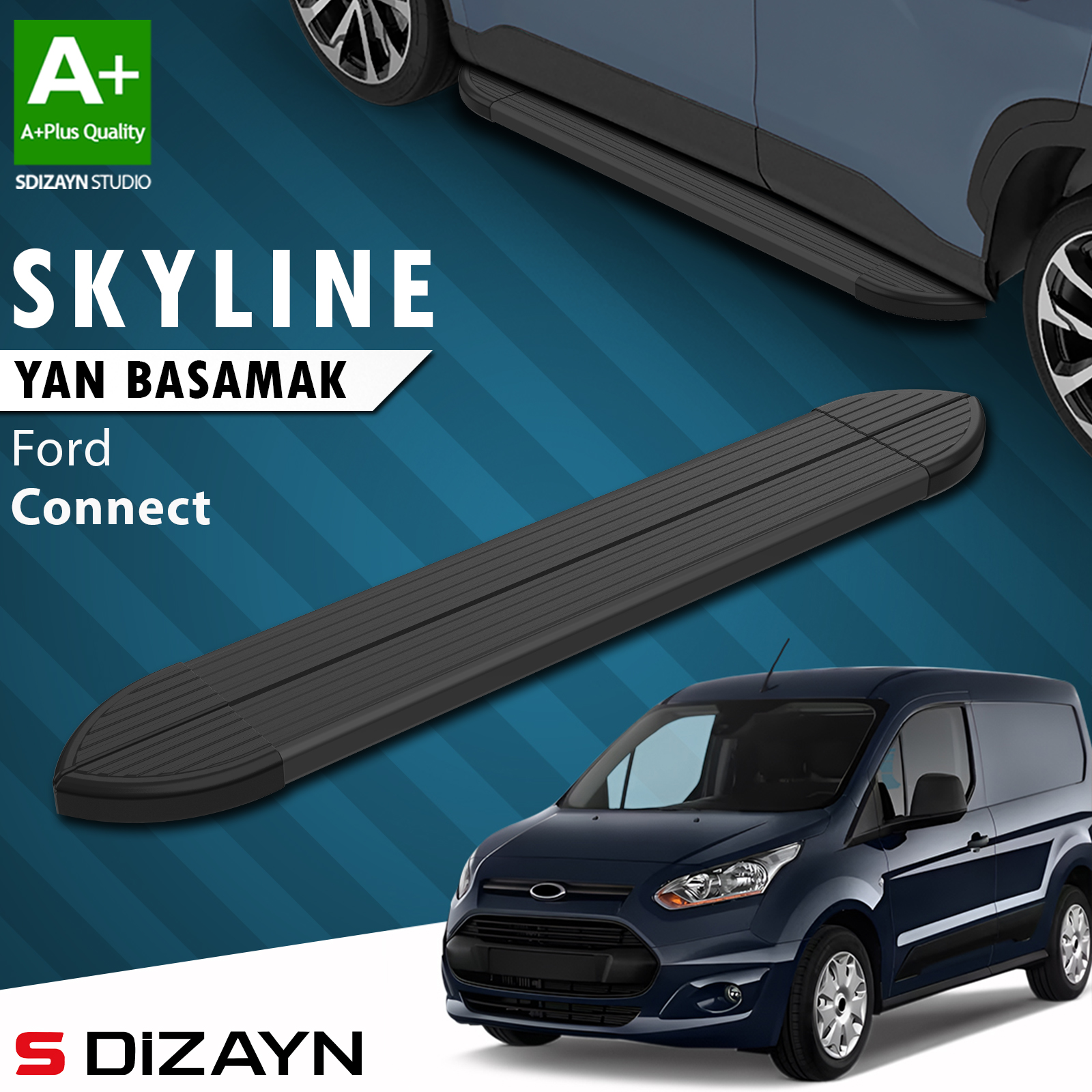 S-Dizayn Ford Connect 2 Skyline Siyah Yan Basamak 183 Cm 2014-2023 A+ Kalite