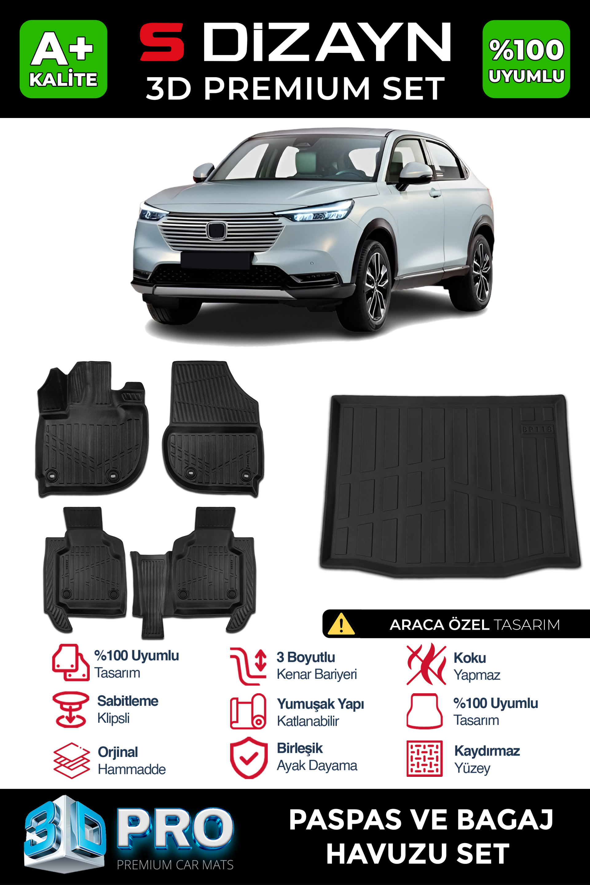 S-Dizayn Honda HR-V 3D Pro Havuzlu Paspas ve Bagaj Havuzu Seti (2'li SET) 2020 Üzeri A+ Kalite