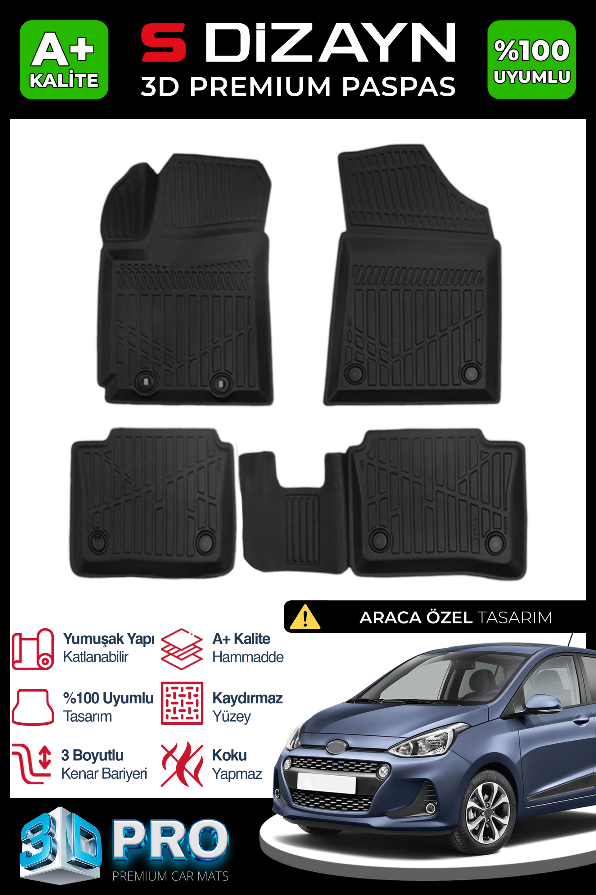 "3D Havuzlu Paspas," her araç modeli için özel olarak ölçülendirilmiş ve tasarlanmıştır. Bu sayede, aracınızın zeminine tam uyum sağlar, boşluk bırakmaz ve kaymadan güvenli bir kullanım sunar.
