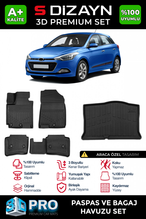 S-Dizayn Hyundai i20 3D Pro Havuzlu Paspas ve Bagaj Havuzu Seti (2'li SET) 2014-2020 A+ Kalite