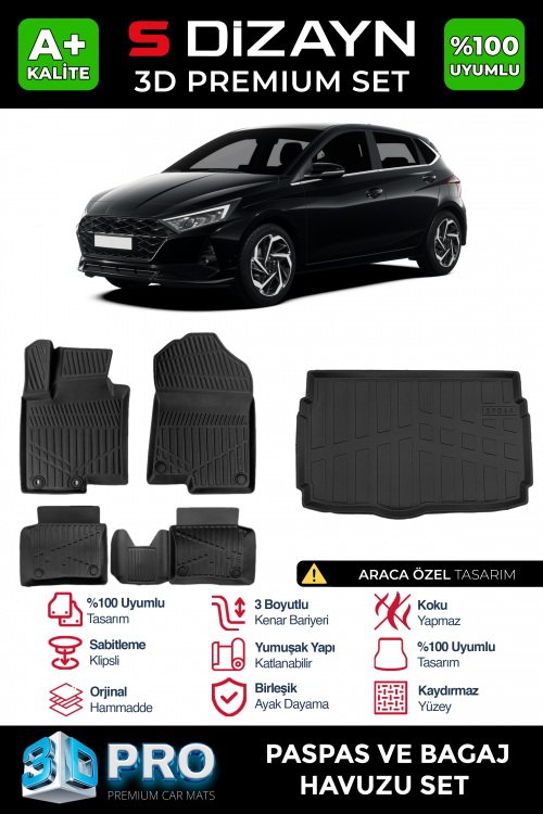 S-Dizayn Hyundai i20 3D Pro Havuzlu Paspas ve Bagaj Havuzu Seti (2'li SET) 2020 Üzeri A+ Kalite