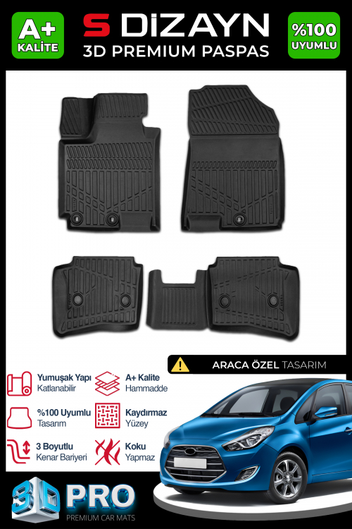 S-Dizayn Hyundai IX20 3D Pro Havuzlu Paspas 2015-2020 A+ Kalite