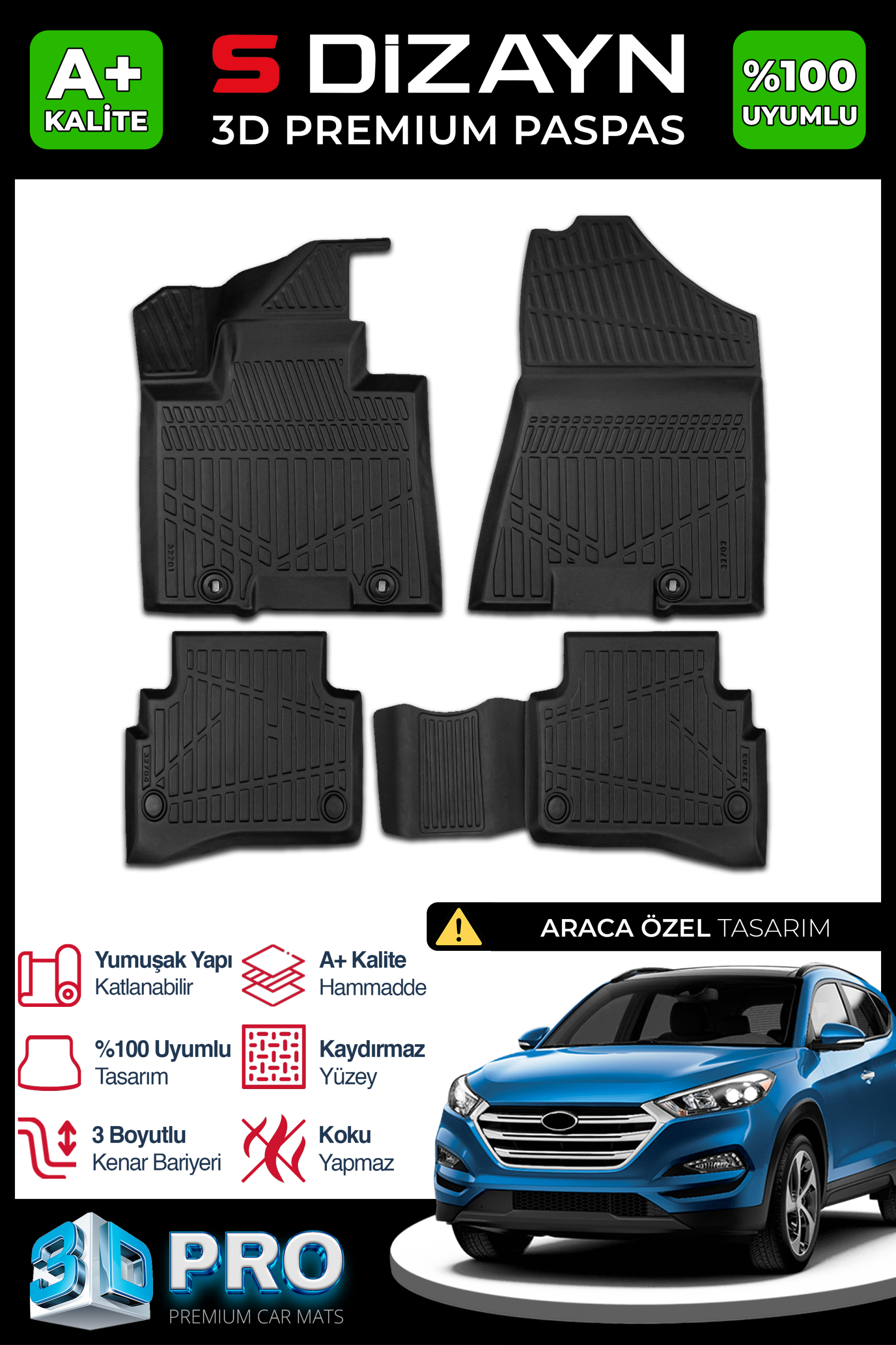 S-Dizayn Hyundai Tucson 3D Pro Havuzlu Paspas 2015-2020 A+ Kalite