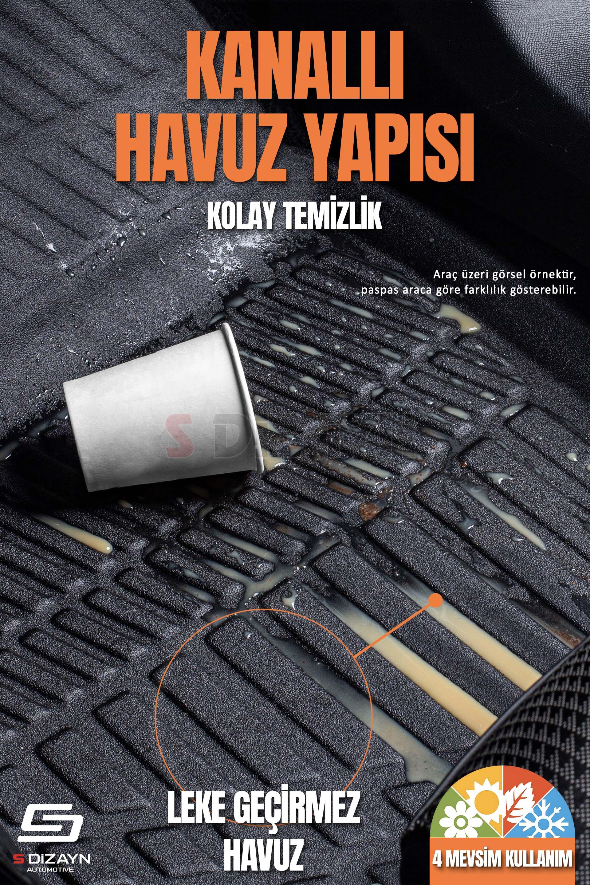 "3D Havuzlu Paspas," her araç modeli için özel olarak ölçülendirilmiş ve tasarlanmıştır. Bu sayede, aracınızın zeminine tam uyum sağlar, boşluk bırakmaz ve kaymadan güvenli bir kullanım sunar.