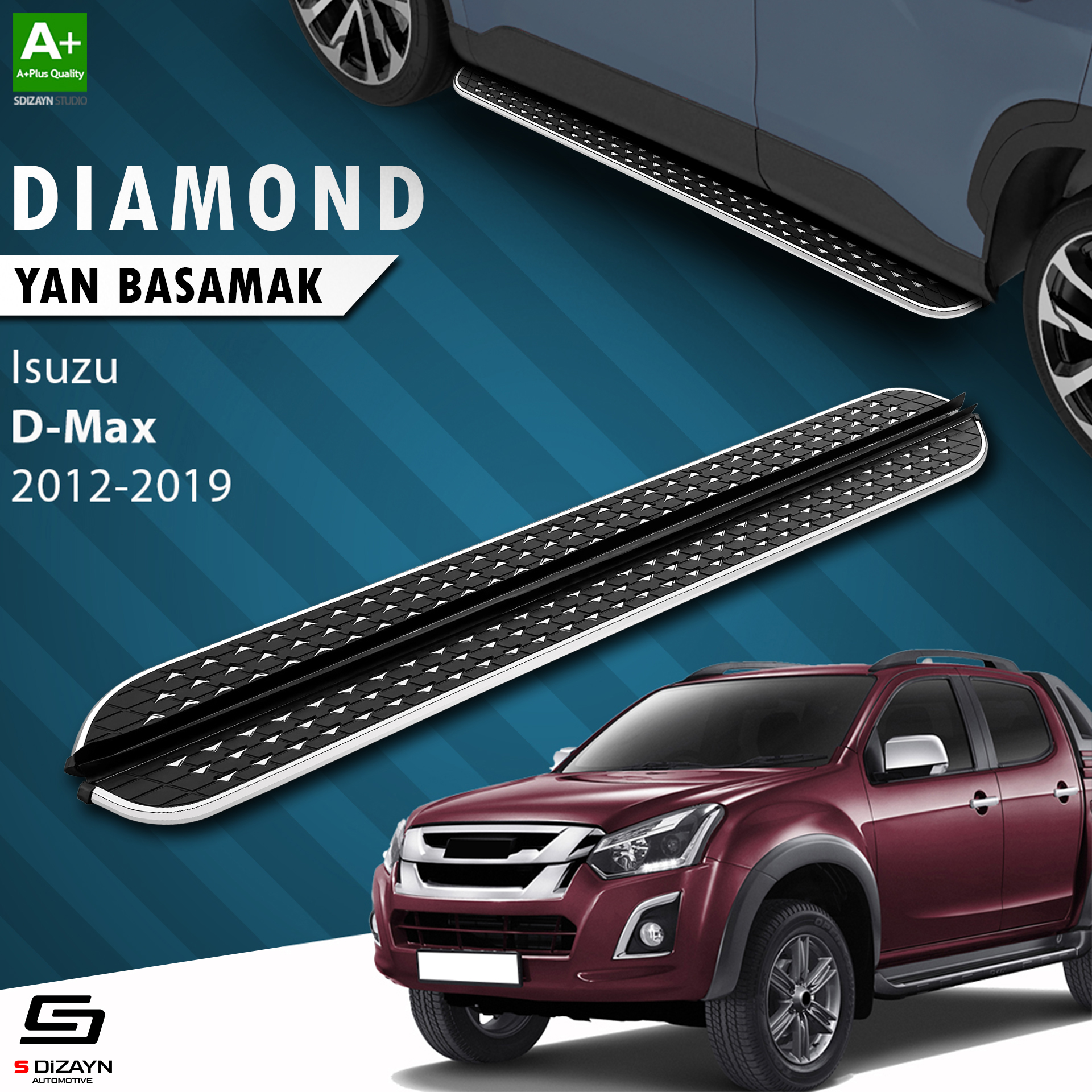 S-Dizayn Isuzu D-Max 2 Diamond Krom Yan Basamak 203 Cm 2012-2019 A+ Kalite
