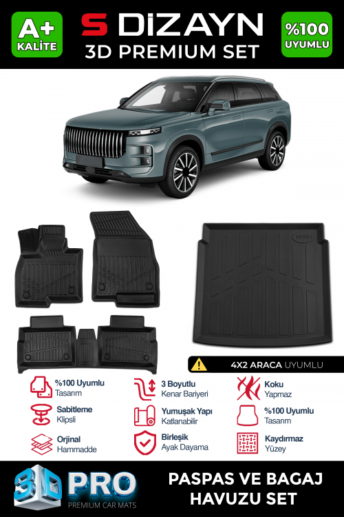 "3D Havuzlu Paspas," her araç modeli için özel olarak ölçülendirilmiş ve tasarlanmıştır. Bu sayede, aracınızın zeminine tam uyum sağlar, boşluk bırakmaz ve kaymadan güvenli bir kullanım sunar.