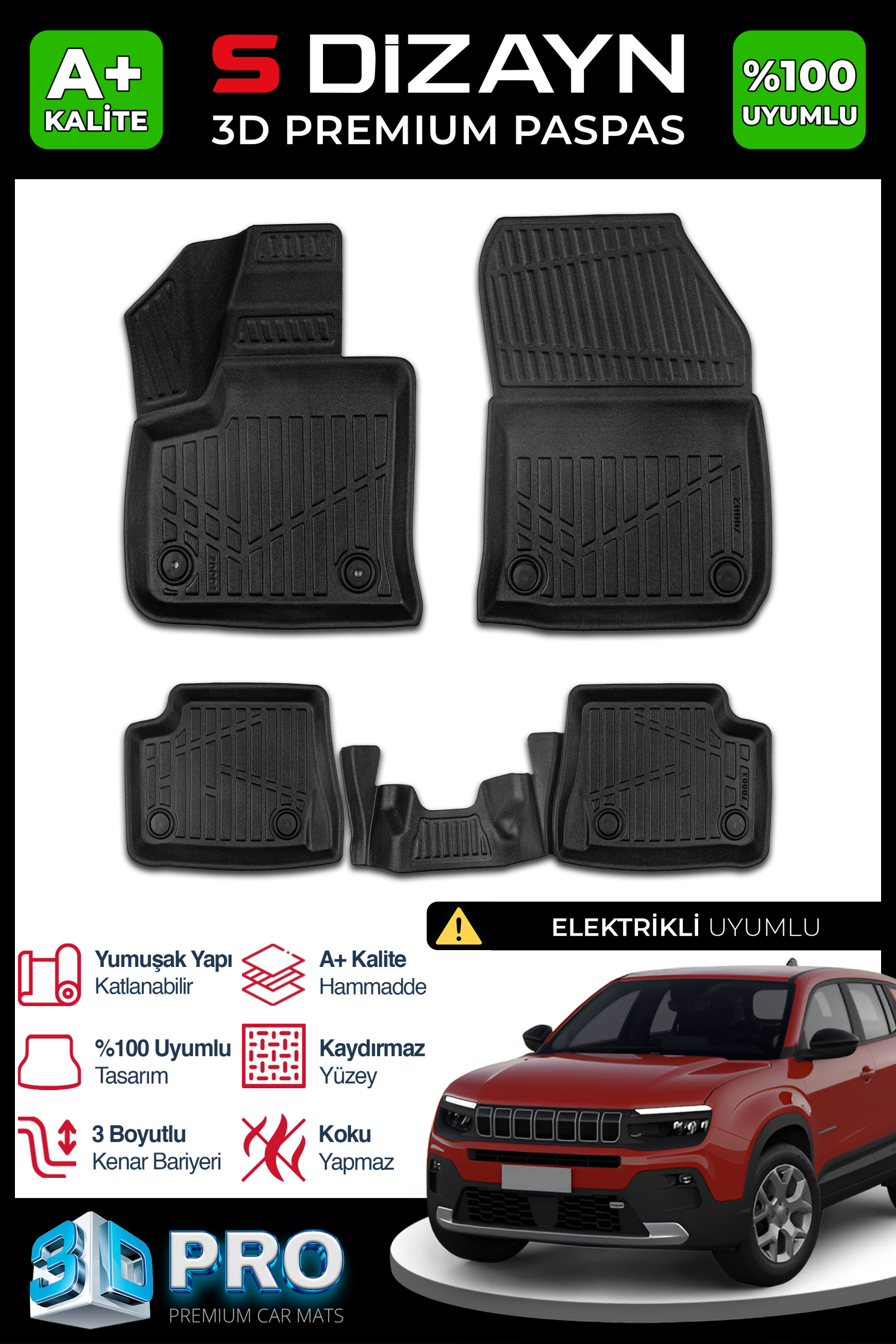 S-Dizayn Jeep Avenger 3D Pro Havuzlu Paspas 2023 Üzeri A+ Kalite