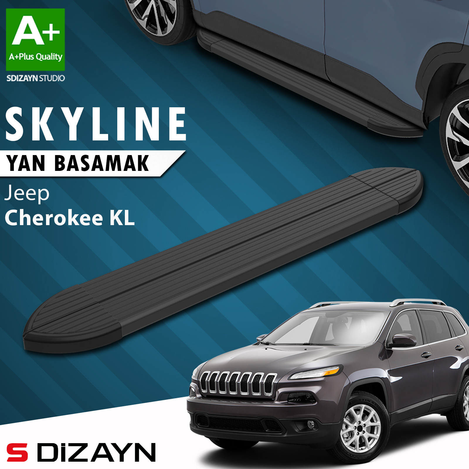S-Dizayn Jeep Cherokee KL Skyline Siyah Yan Basamak 173 Cm 2013-2023 A+ Kalite