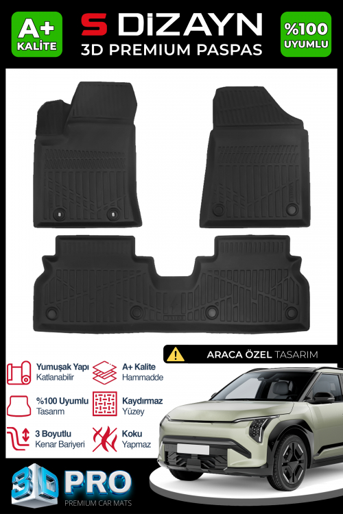 S-Dizayn Kia Ev3 3D Pro Havuzlu Paspas 2024 Üzeri A+ Kalite