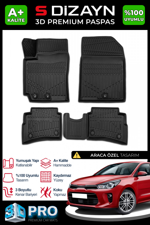S-Dizayn Kia Rio 3D Pro Havuzlu Paspas 2017-2023 A+ Kalite
