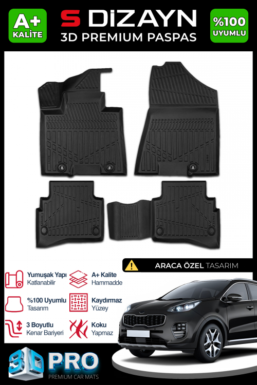 S-Dizayn Kia Sportage 3D Pro Havuzlu Paspas 2016-2021 A+ Kalite