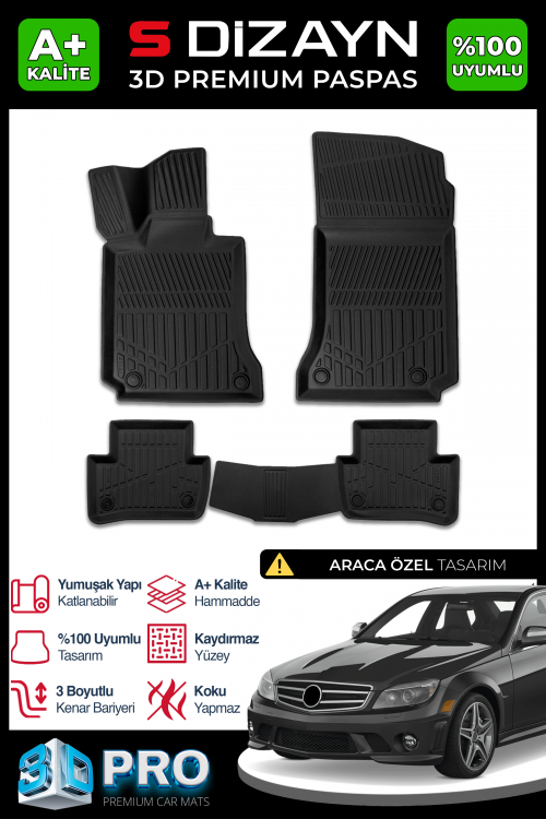 S-Dizayn Mercedes C Serisi W204 3D Pro Havuzlu Paspas 2007-2014 A+ Kalite