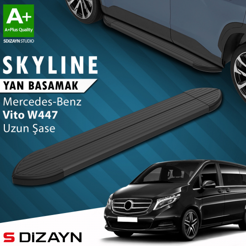 S-Dizayn Mercedes Vito W447 Uzun Şase Skyline Siyah Yan Basamak 253 Cm 2014 Üzeri A+ Kalite