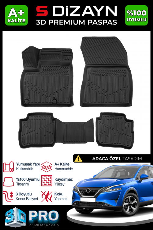 S-Dizayn Nissan Qashqai E-Power 3D Pro Havuzlu Paspas 2021-2024 A+ Kalite