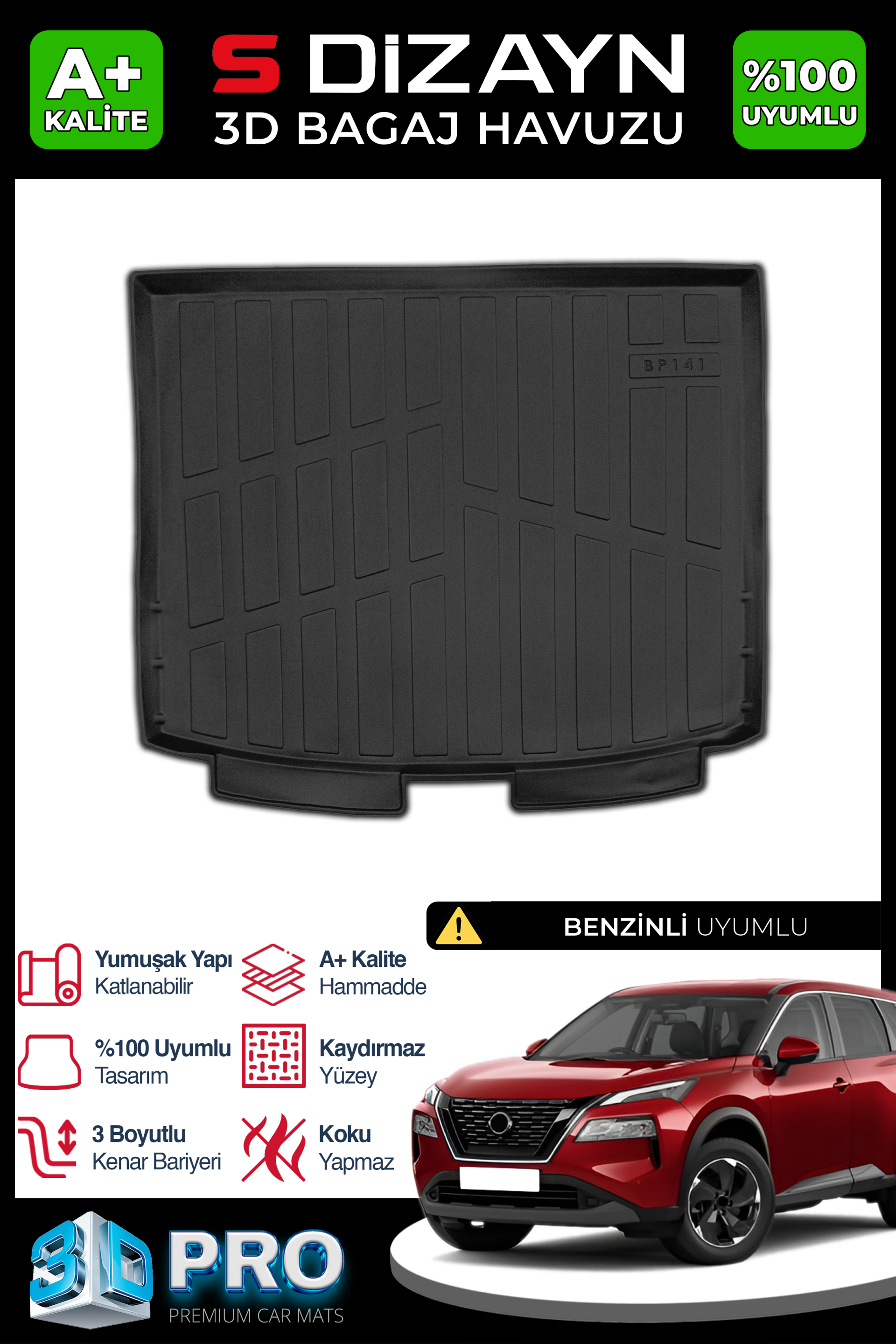 S-Dizayn Nissan X-Trail Benzinli 3D Pro Bagaj Havuzu 2022 Üzeri A+ Kalite
